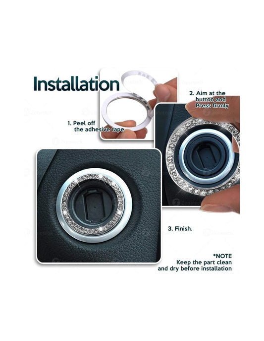 2x White Diamond Crystal Ignition Ring Engine Start/Stop AC Volume Knob Ultra Bling Diamond Luxury Crystal Embellishment Universal Round Fit