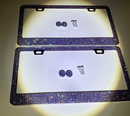 2 Luxury Crystal Blueberry VIOLET PURPLE Tanzanite Diamond License Plate Frame Sparkle Lux Cover Holder Bling Caps
