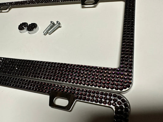 2 Luxury Plum Dark Eggplant PURPLE Diamond Crystal License Plate Frame anti-theft Sparkle Lux Cover Holder Bling Caps Made With Crystal