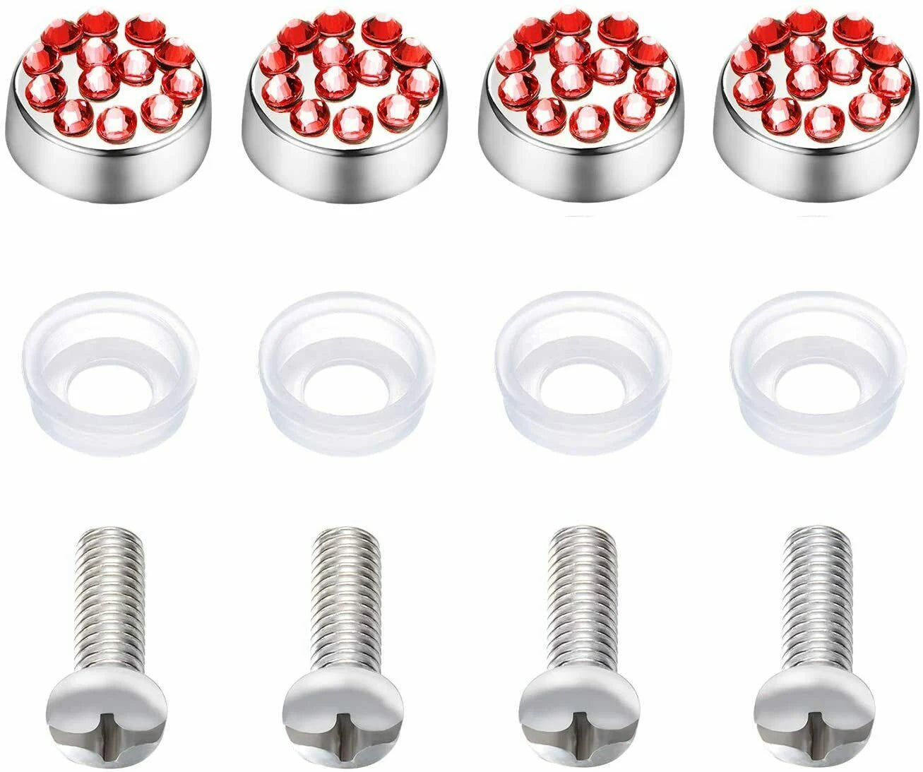2 Luxury RED Light Siam Diamond CRYSTAL License Plate Anti-theft Sparkle Lux Frame Cover Holder Bling Caps