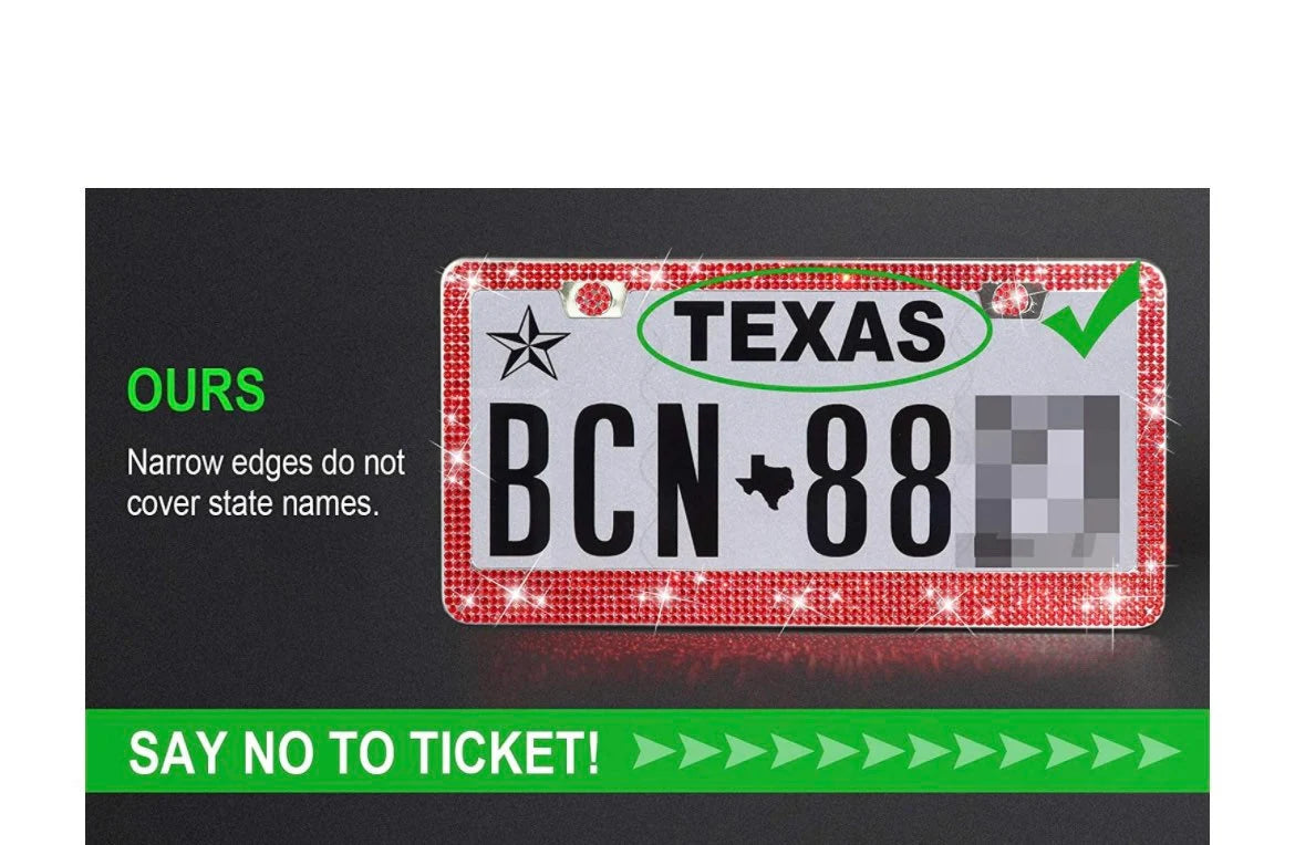 2 Luxury Ruby RED Crystal Light Siam Diamond Blinged License Plate Frame Narrow Top Anti-theft Sparkle Lux Cover Holder Bling Caps