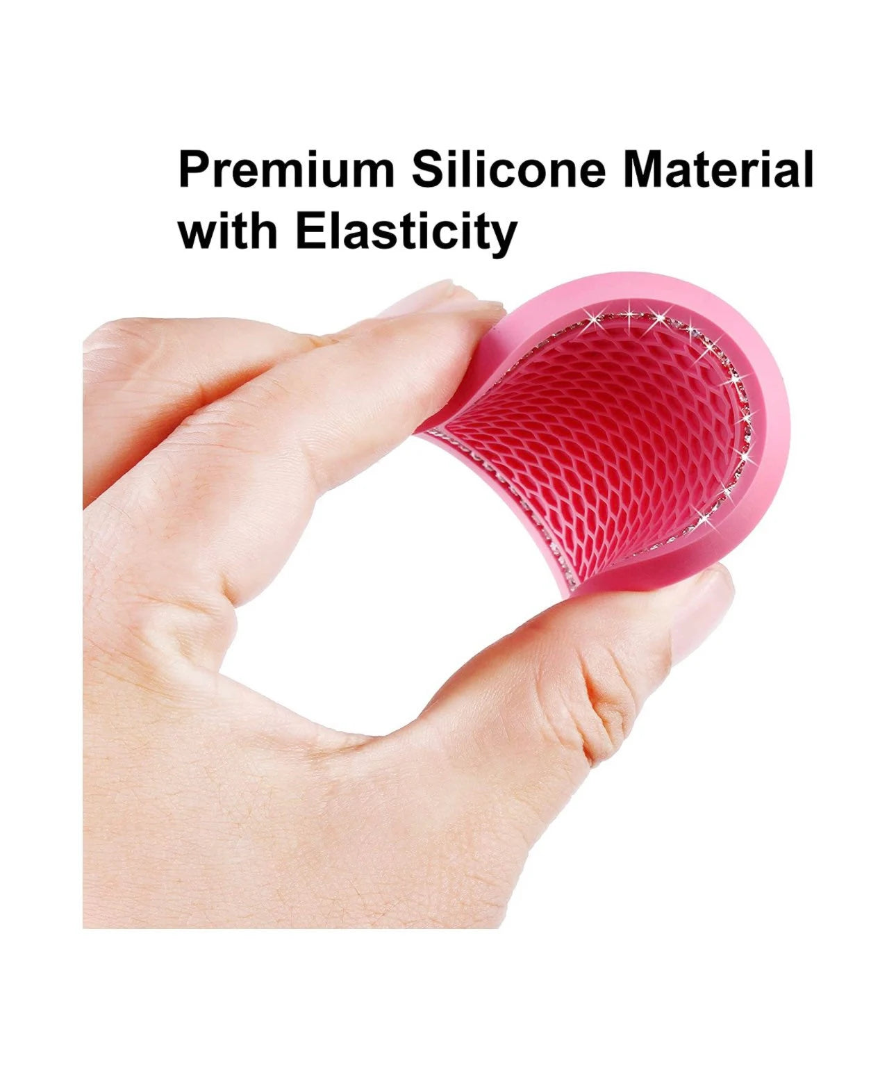 Luxury Crystal Pink Silicone Coasters with White Crystal Border
