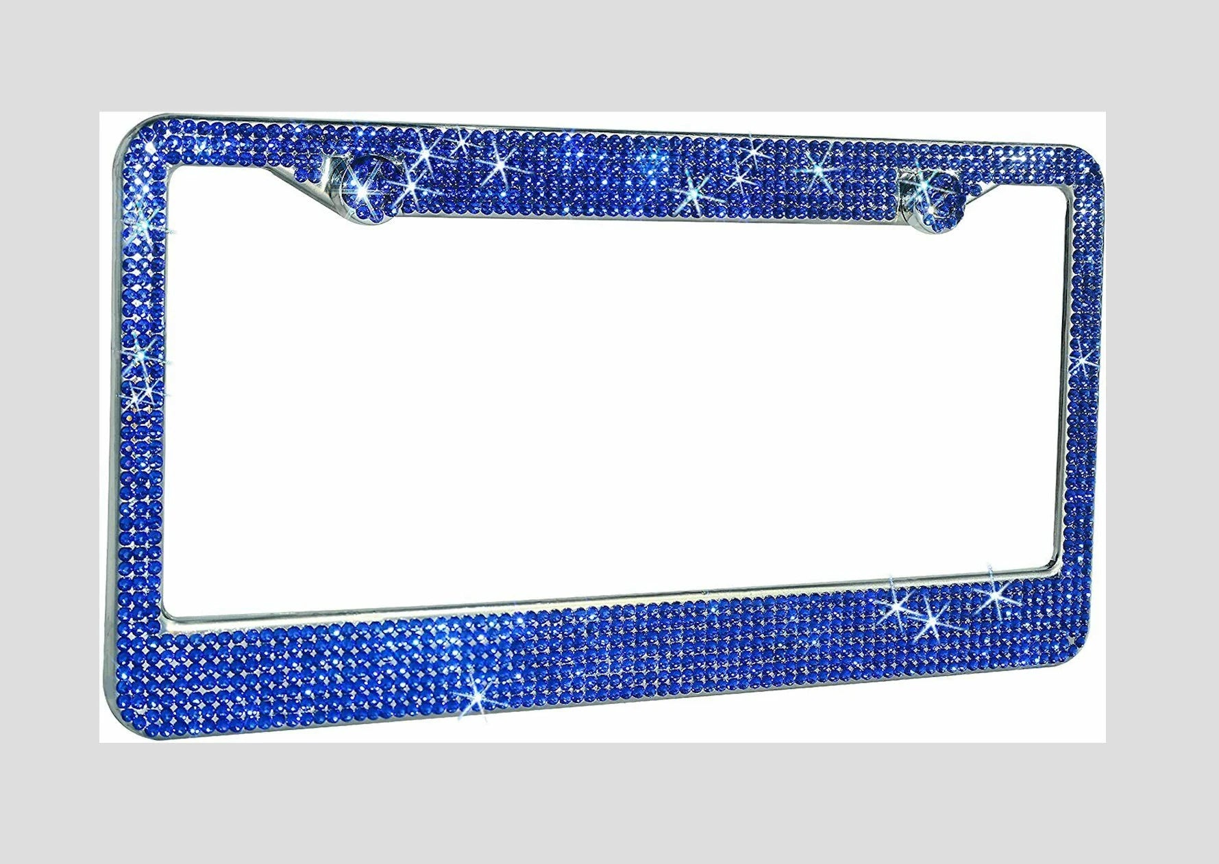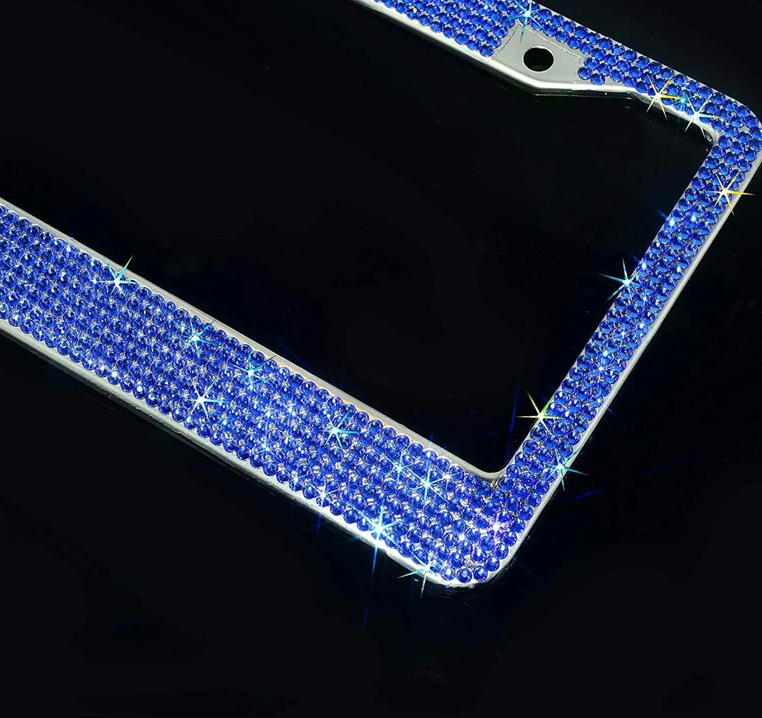 2 Royal BLUE Sapphire Crystal Diamond Encrusted Metal License Plate Frame Cover Holder Anti-theft Sparkle Lux Bling Caps
