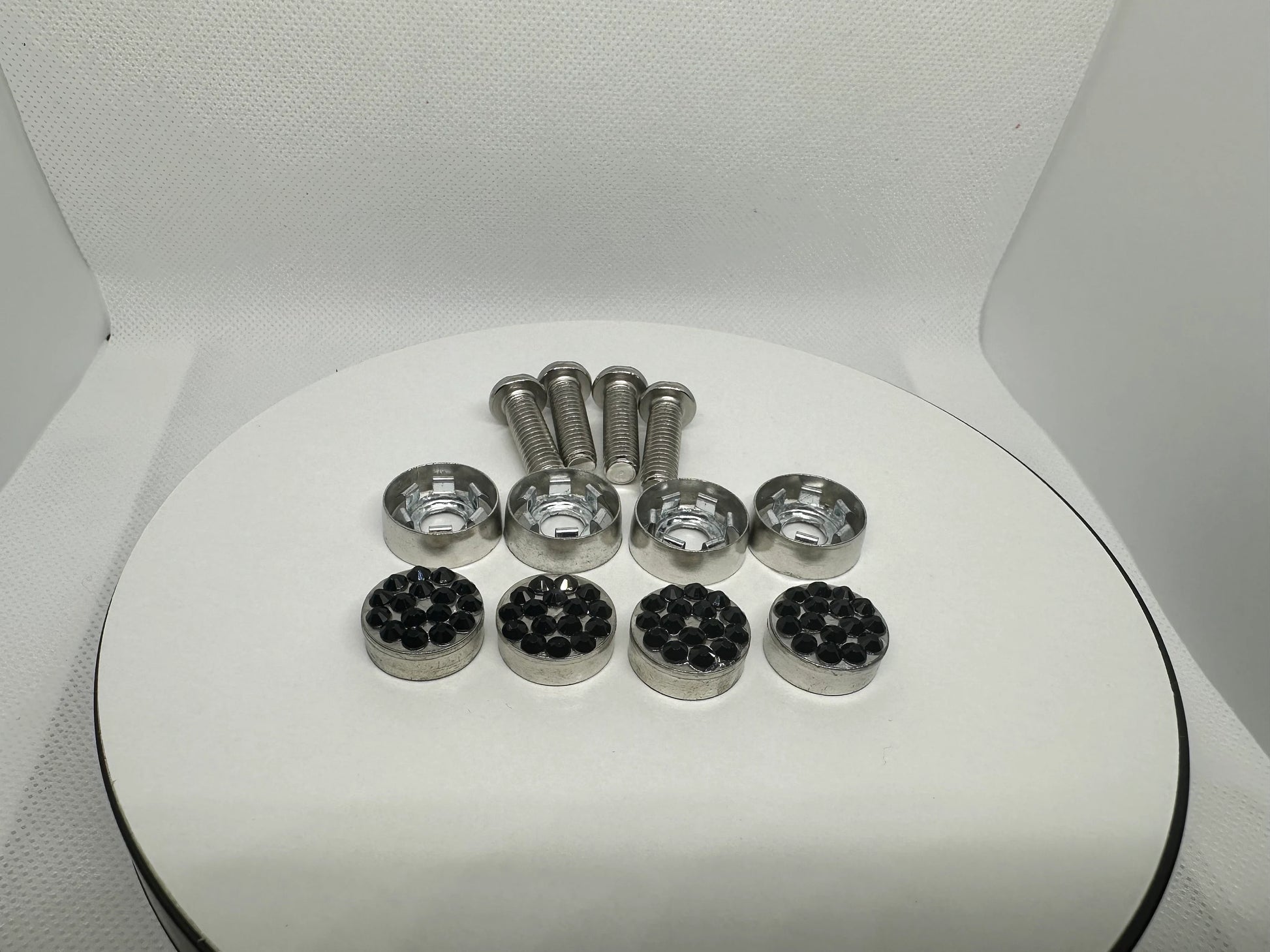 4 Jet Black Diamond Crystal Encrusted SILVER METAL CAPS License Plate Frame Replacement Bling Caps and Screws Sparkly Luxury Anti-theft