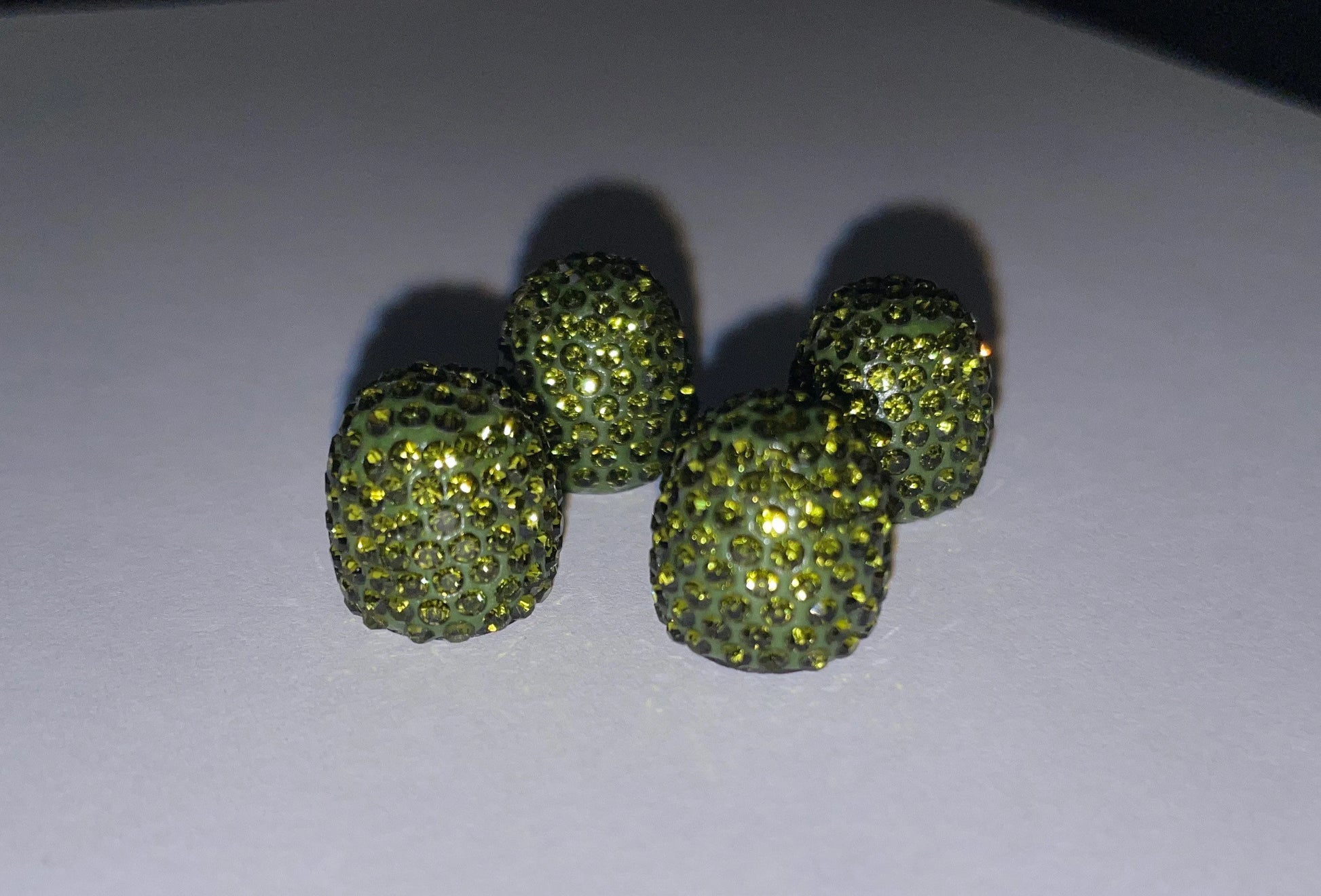 4x Olive Army Military Camo Green Tire Valve Caps Ultra Bling Diamond Luxury Olivine Crystal Embellishment Universal Round Fit Car Bicycle Motorcycle Bike SUV Set