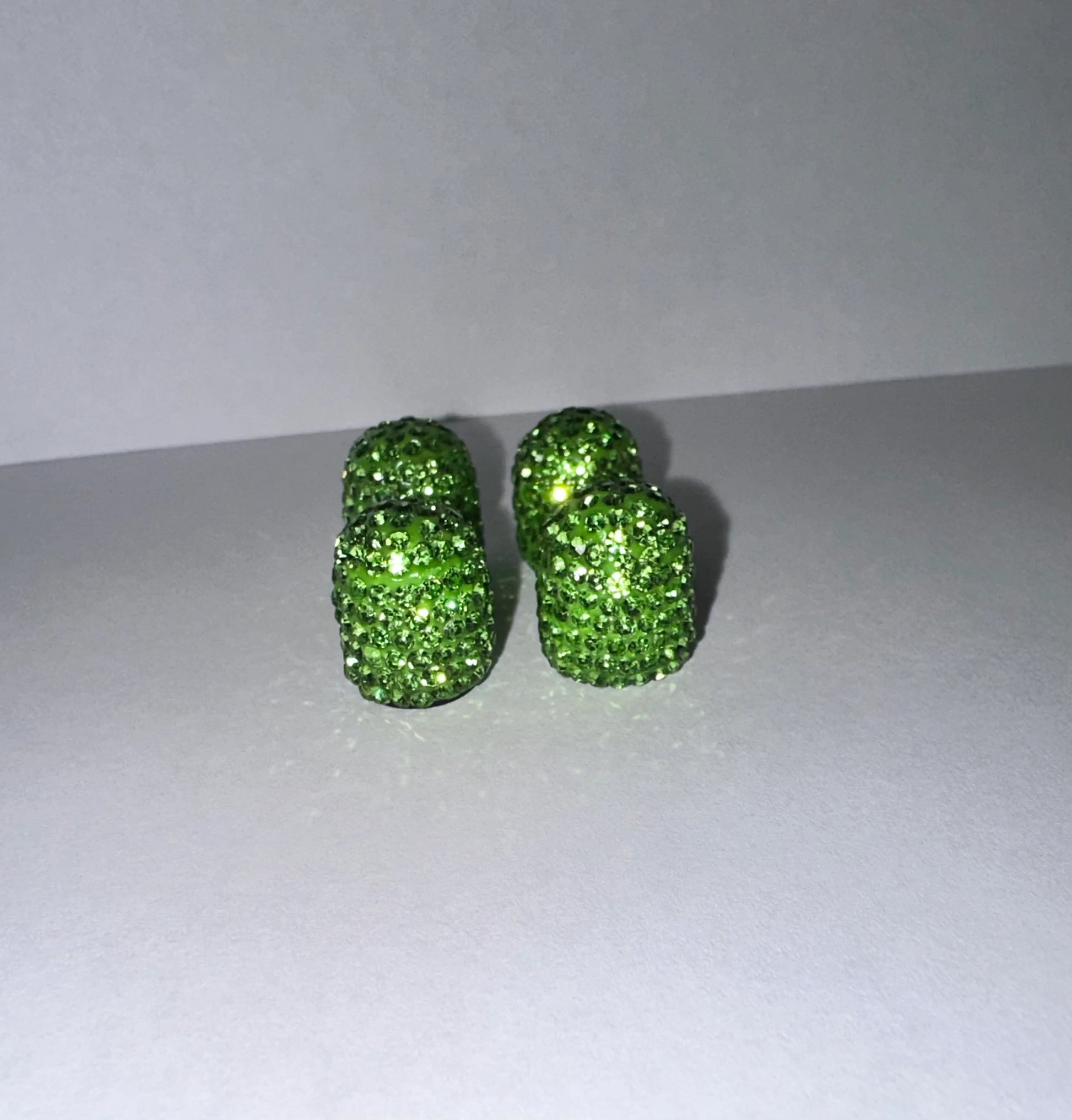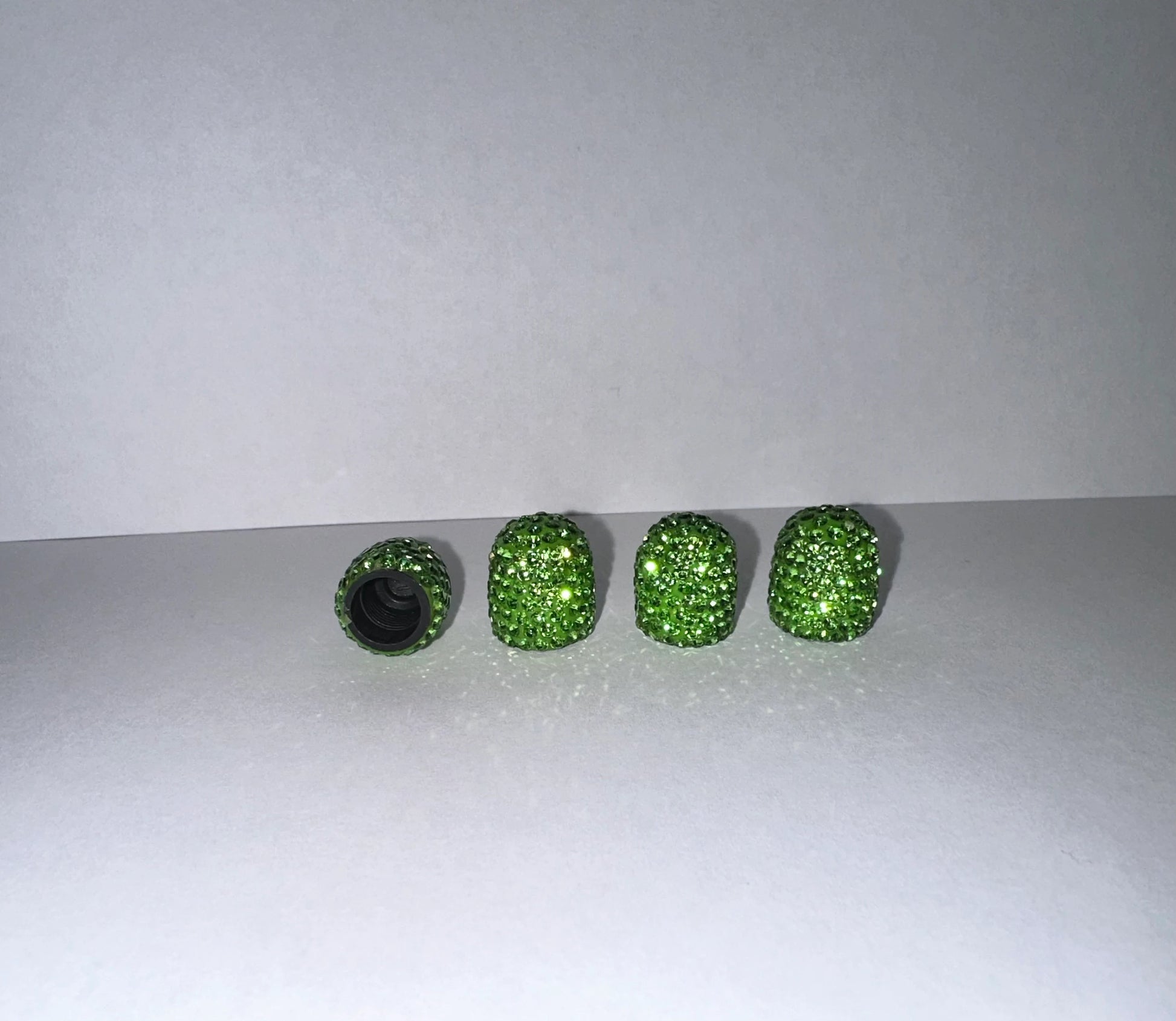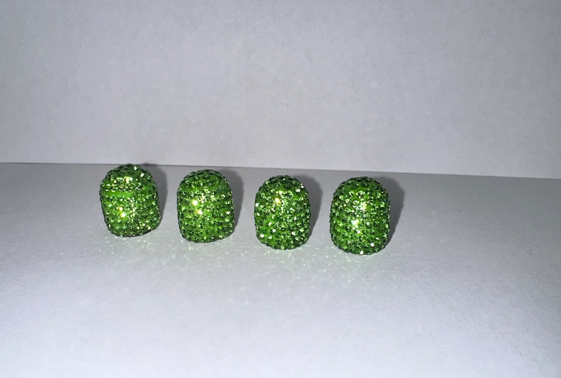 4x Peridot Light Green Emerald Tire Valve Caps Bling Diamond Luxury Crystal Embellishment Universal Round Car Bicycle Motorcycle Bike SUV