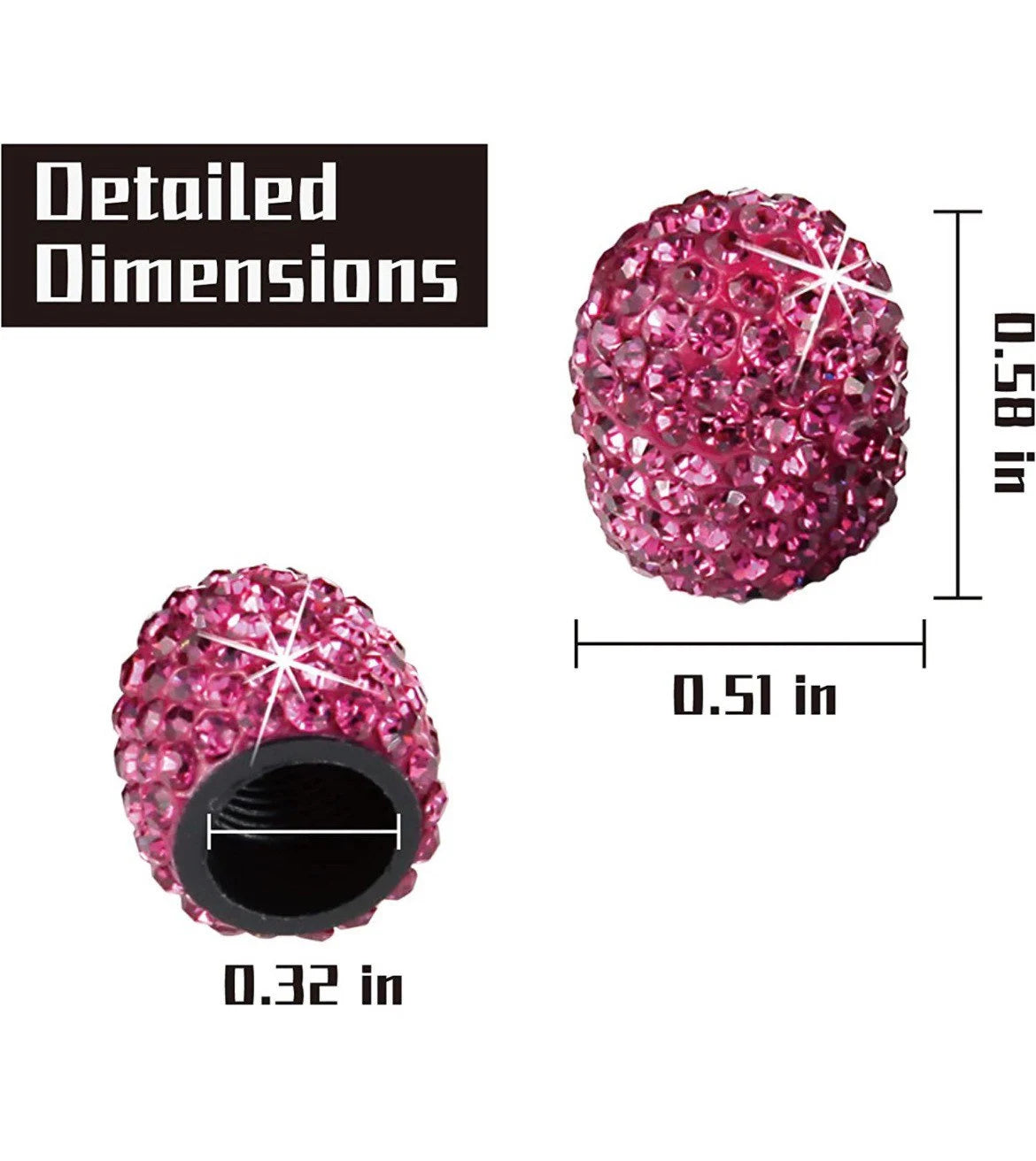 4x Raspberry Violet Pink Tire Valve Caps Ultra Bling Diamond Luxury Crystal Embellishment Round Fit Car Bicycle Motorcycle Bike SUV
