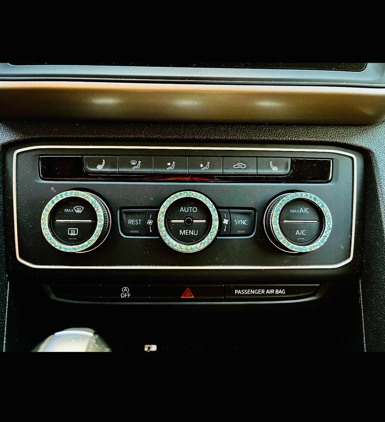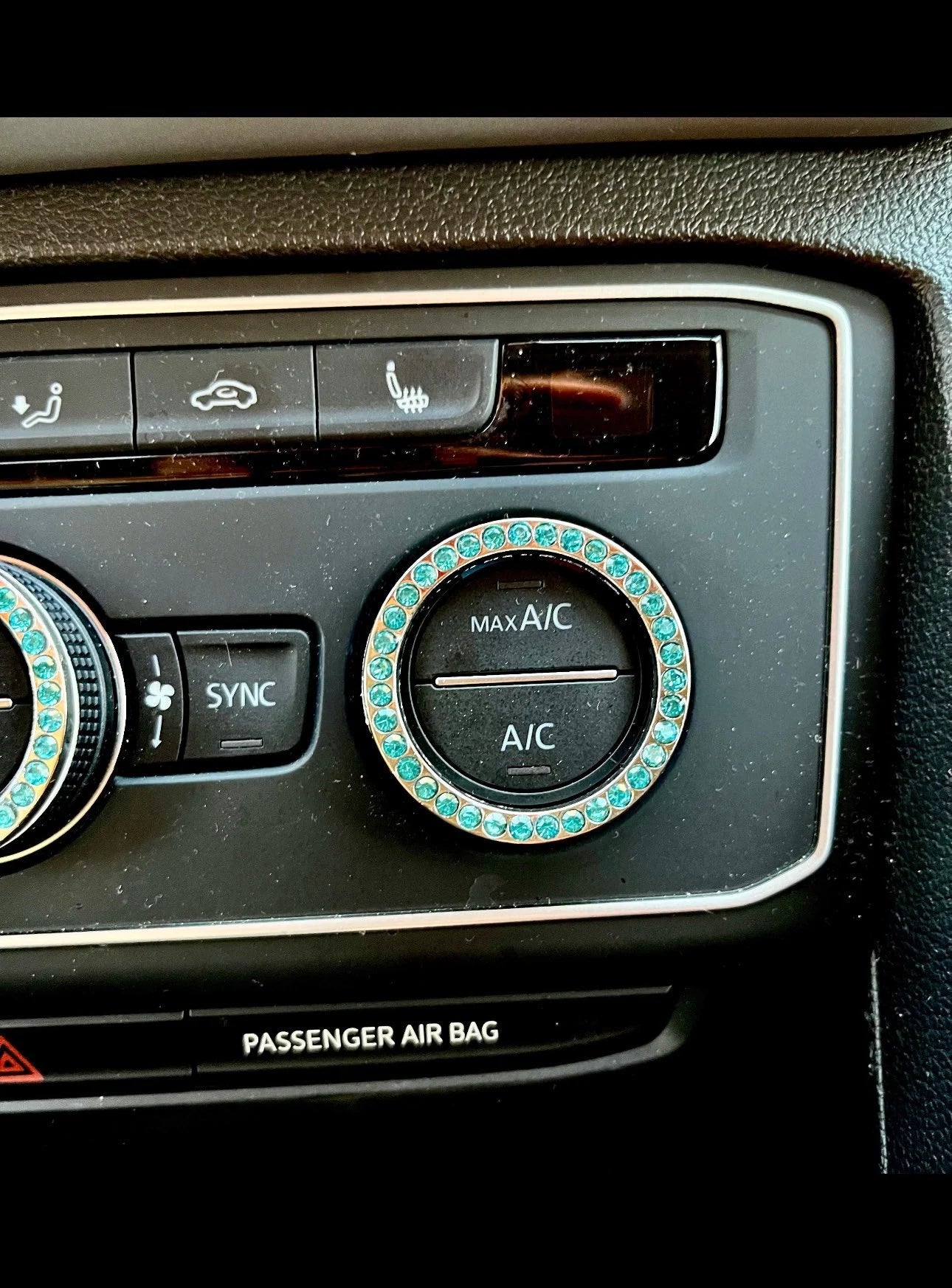 4 Luxury Crystal Encrusted Tire Valve Caps and 2 Ignition/AC knob Rings