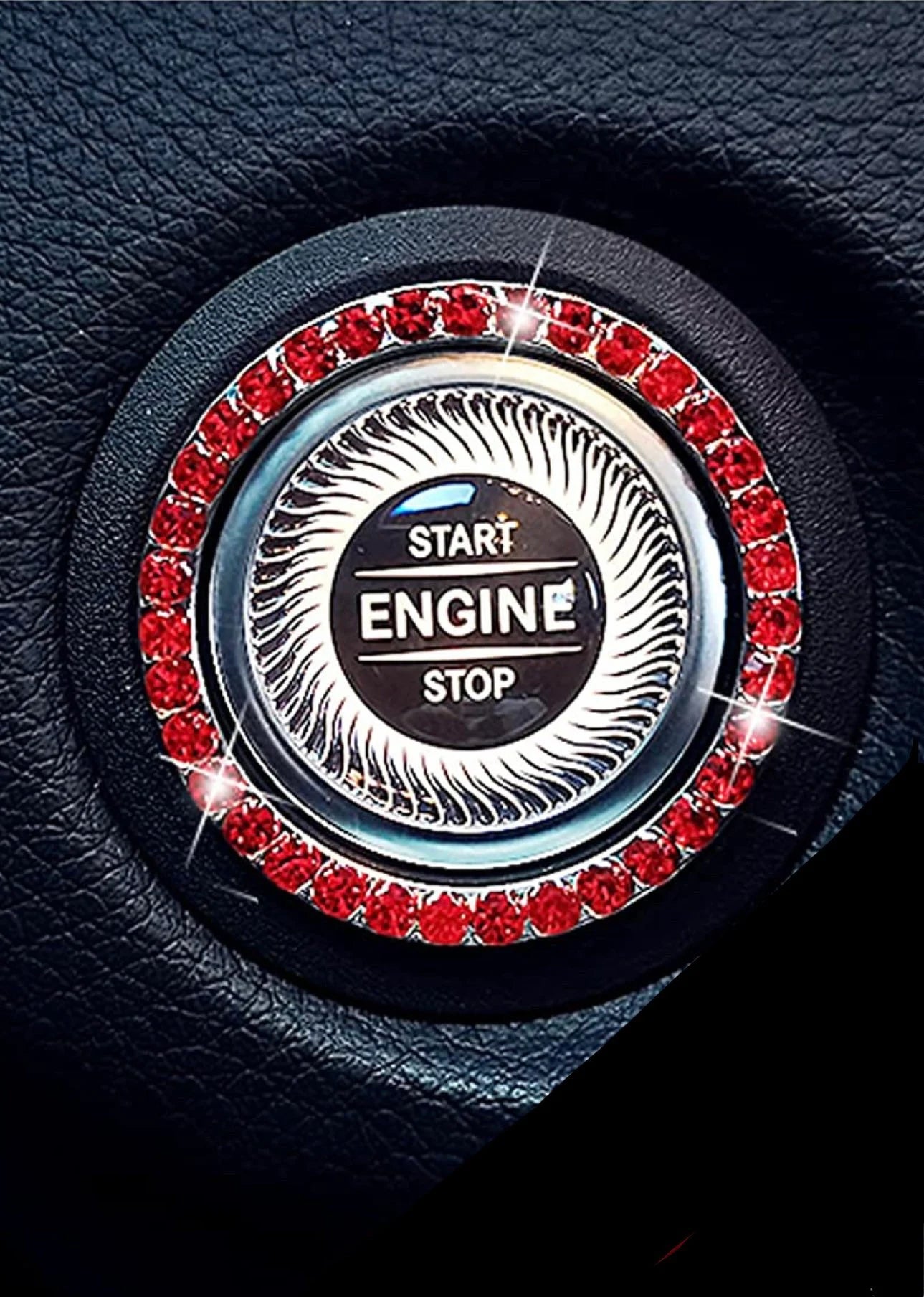 6 pc Bling SET Red Light Siam 4 Tire Valve Caps 2 Ignition Rings AC Knob Diamond Luxury Crystal Embellishment Car SUV Motorcycle Bike