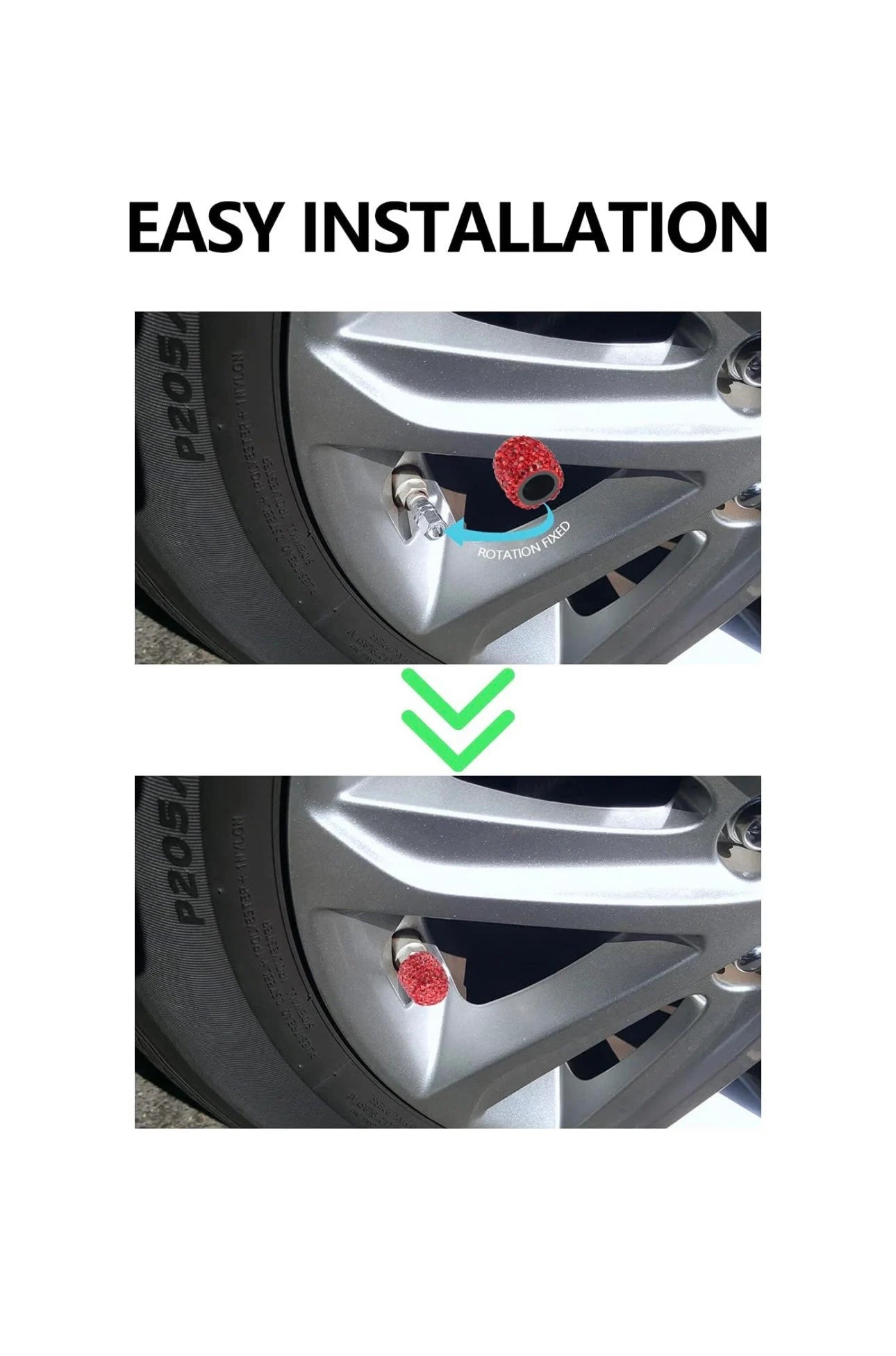 4 Luxury Crystal Encrusted Tire Valve Caps and 2 Ignition/AC knob Rings