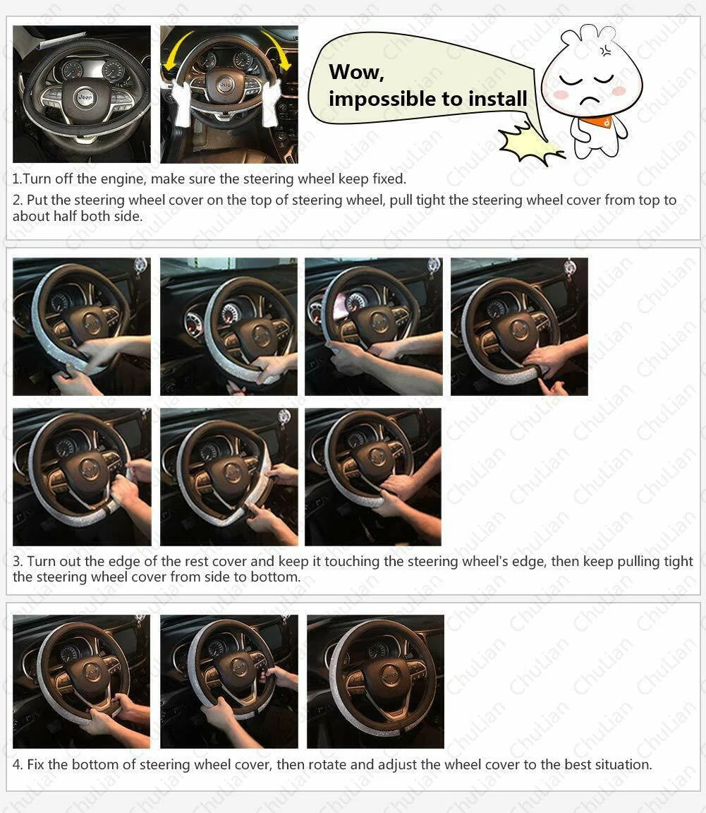 Aqua Blue Leather Bling White Diamond Luxury Steering Wheel Cover with Crystal Embellishment Universal Round Fit