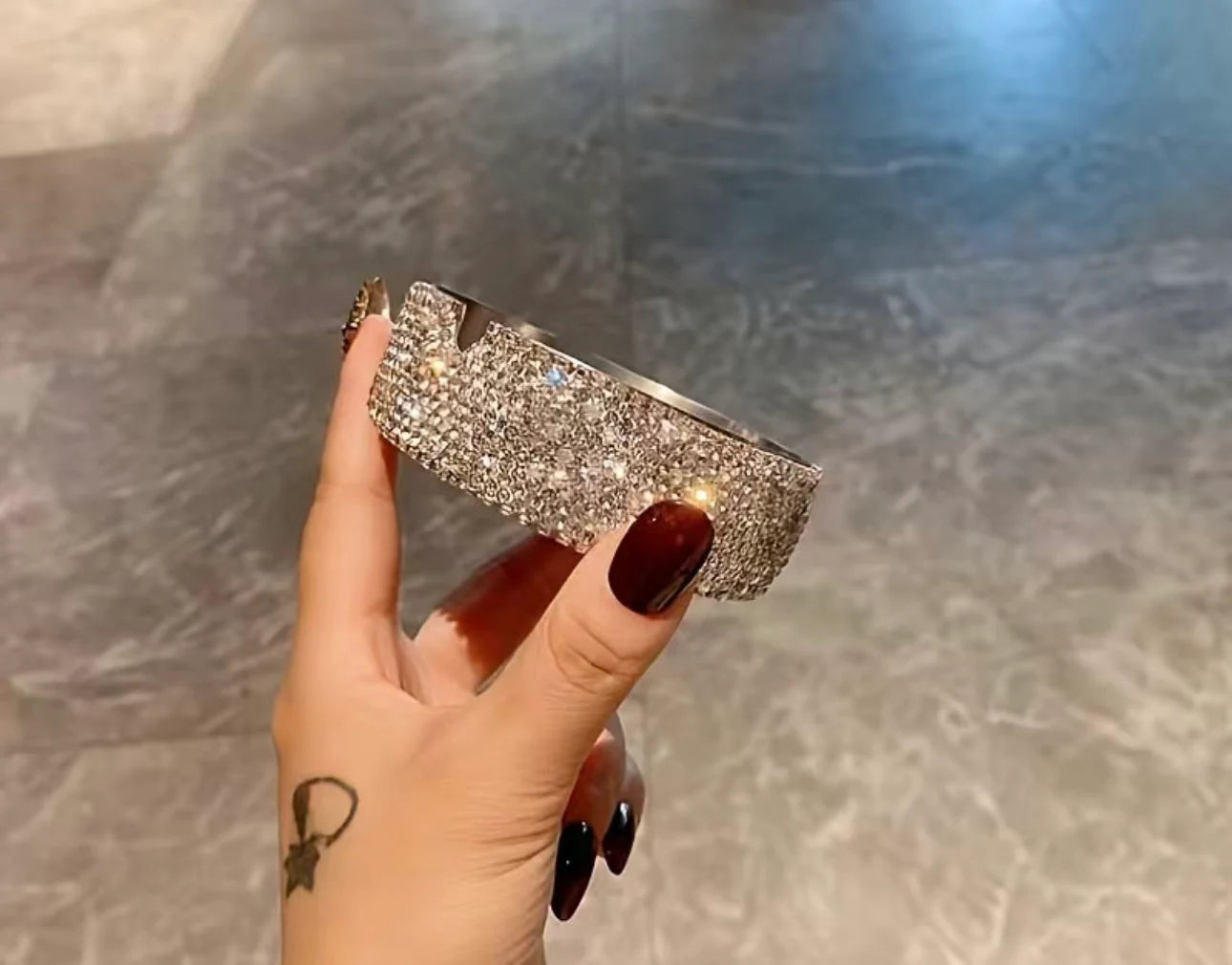 Ashtray Crystal Encrusted Metal Base with White Diamond Aurora Borealis AB Lightweight Blinged Out Room Decor Feminine Gift Smoking Accessory