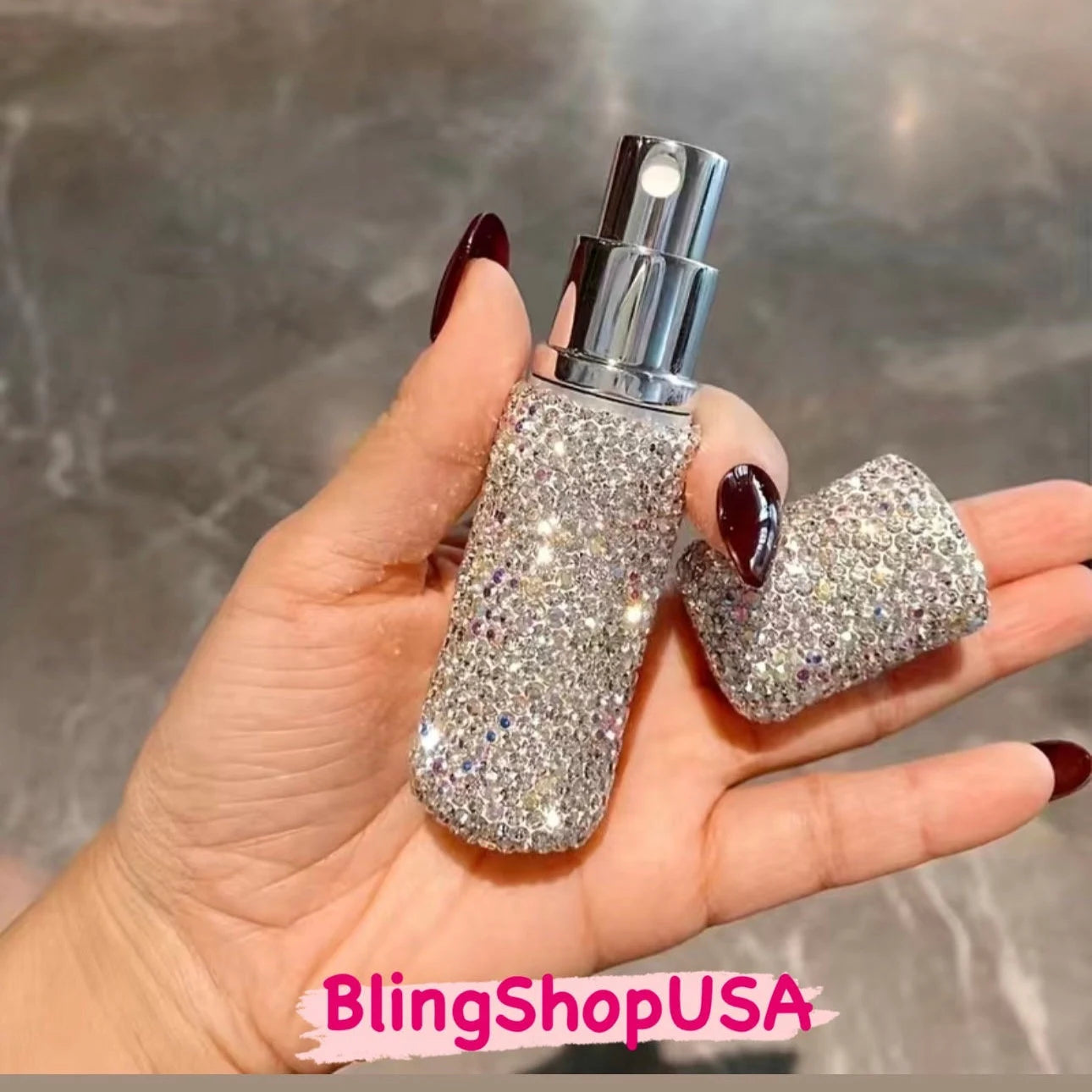 Crystal Encrusted Perfume Atomizer Sprayer Bottle Travel Size White Diamond & Aurora Borealis Bling Reusable Refillable Women Feminine Gift