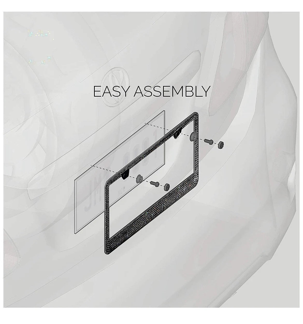 2 Swarovski JET BLACK Crystal Diamond Encrusted Blacked Out License Plate Black MetalLuxury Sparkly Frames Cover Holder Made with Bling Caps